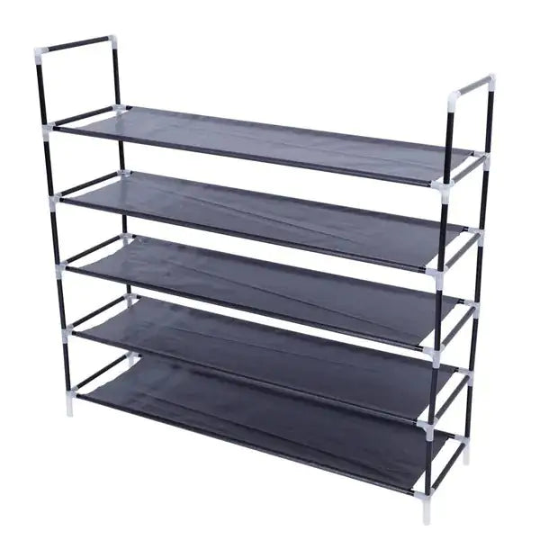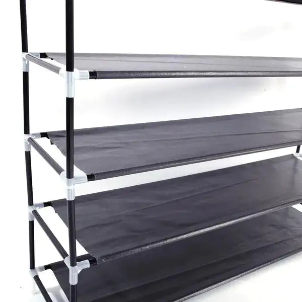 Specifications: 1. Color: Black 2. Material: Strengthened Metal Pipes, Non-woven Fabrics Tiers, Plastic Connectors 3. Dimensions: (39.37 x 11 x 37.4)" / (100 x 28 x 95)cm (L x W x H) 4. Tier Height: 6.7" / 17cm 5. Assembly Required: Yes 6. Tube Diameter: 0.59" / 1.5cm 7. Weight: 2.54 lbs / 1.15 kg Package Includes: 1 x Shoe Rack